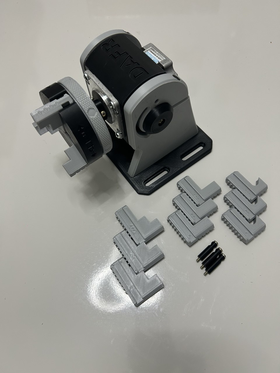 Mandril Rotativo para CNC Laser produzido em 100% ABS(*) para impressoras laser do tipo FIBER e CO2, perfeito para gravação de copos, garrafas, canecas, cuia para chimarrão e canetas. O mandril usa um motor de passo Nema 23 híbrido de 22kgf, uma solução versátil e eficiente para suas necessidades de controle de movimento. Combinando as características dos motores de passo unipolares e bipolares, oferecendo um equilíbrio perfeito entre precisão e torque. Sua capacidade de operar em modos unipolar e bipolar permite maior flexibilidade no controle, otimizando a eficiência energética.